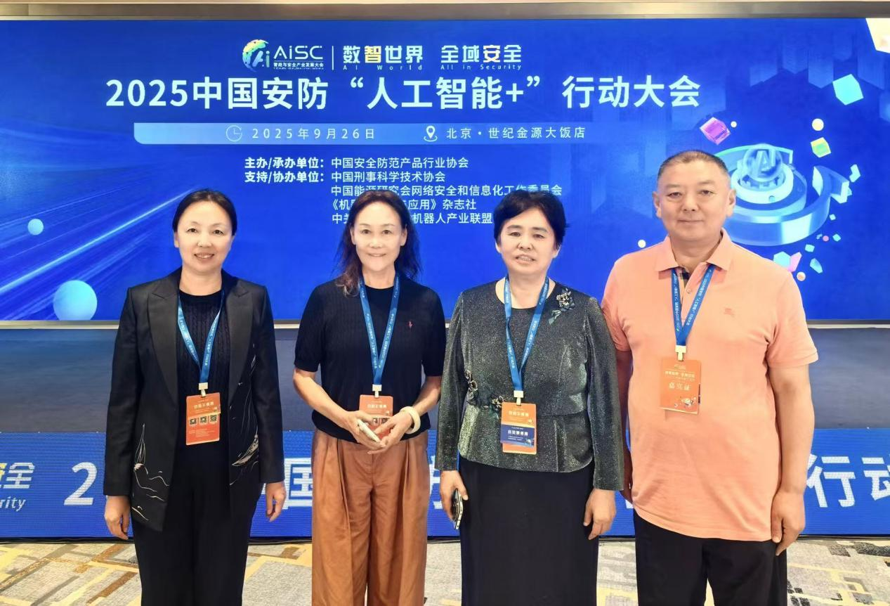 2025年9月26日,中国安全防范产品行业协会在北京召开了2025中国安防“人工智能+”行动大会,济南银捷实业有限公司总经理郭淑珍随行山东省安防协会会长孙增华、副会长王海博、山东司法警官职业学院公共安全系主任尹辉参加了会议。